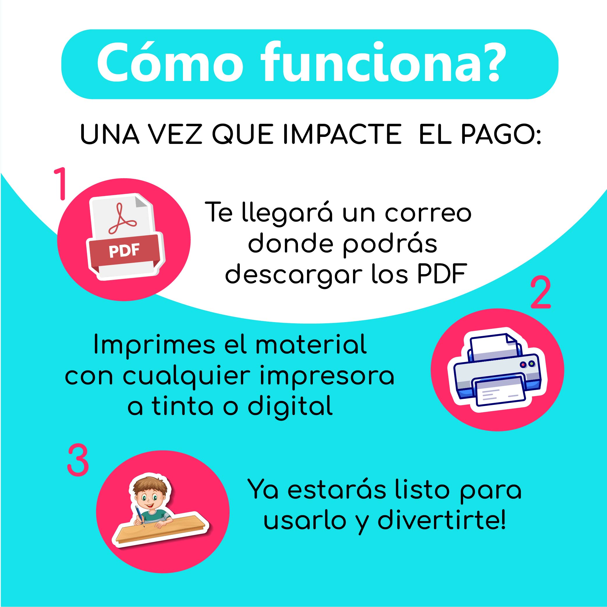 • Encontrarás actividades con ilustraciones sencillas y fácil de identificar para colorear, completar y recortar.