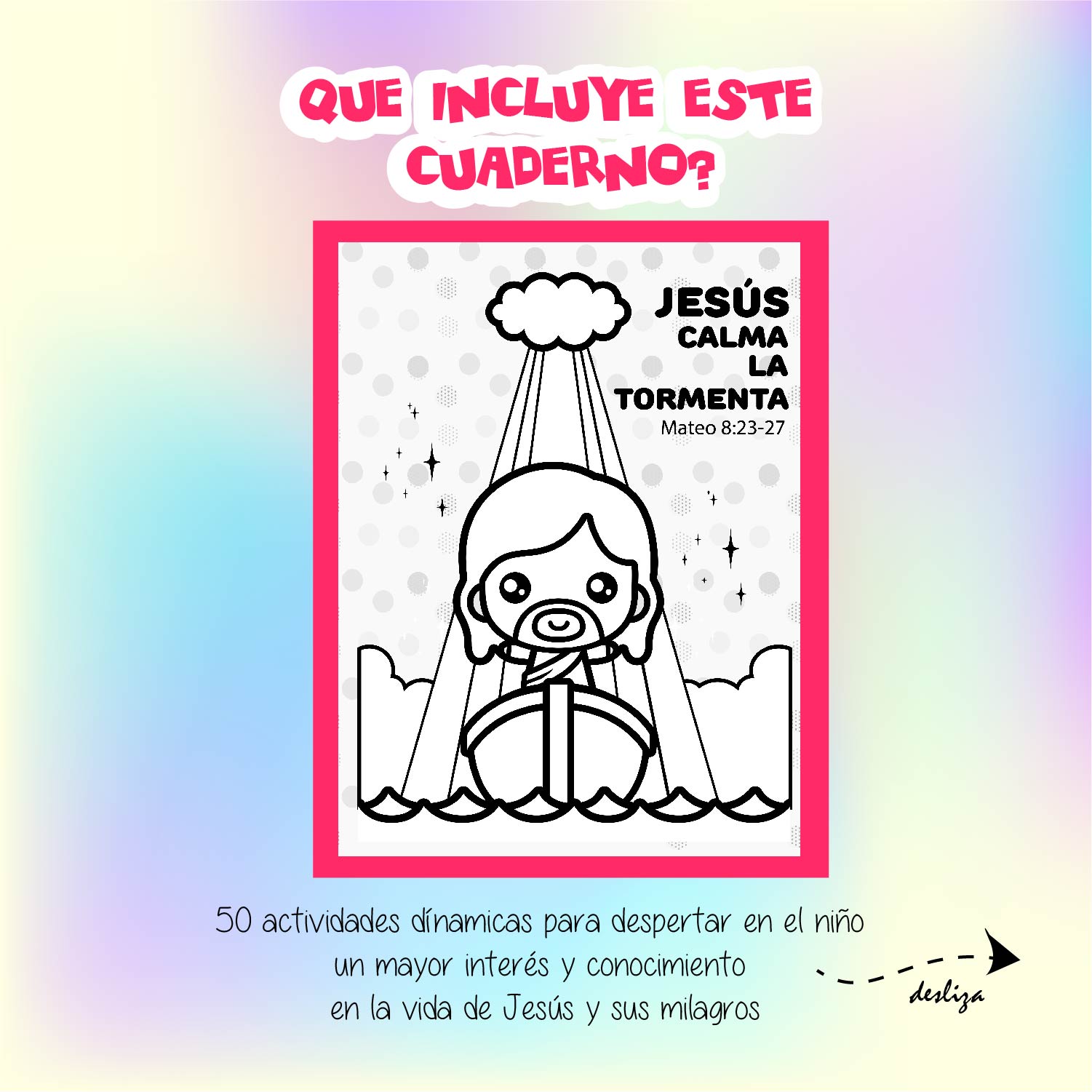 • 50 actividades con ilustraciones Kawaii donde el niño podrá comprender claramente de forma ilustrada la vida de Jesús, sus milagros, sus promesas y momentos claves que irá asimilando y contruyendo en su conocimiento.